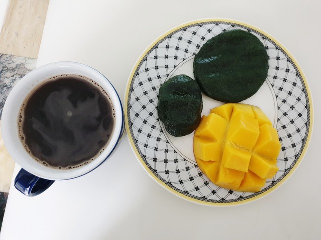 아메리카노와 쑥떡.애플망고로 간단히 아침이요~다들 좋은하루되세요~