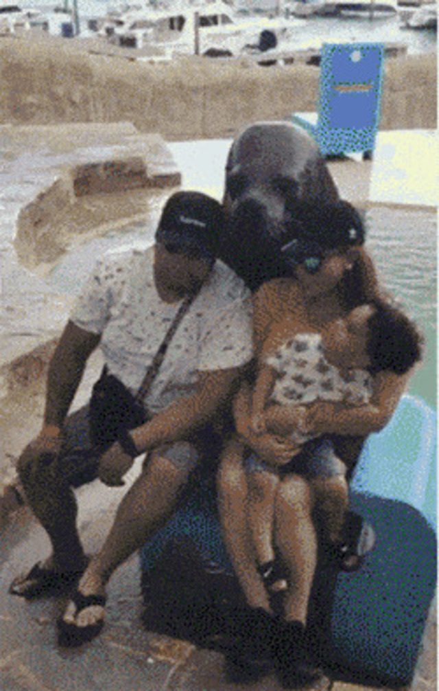 관광객이랑 사진찍는 바다사자의 프로의식....GIF