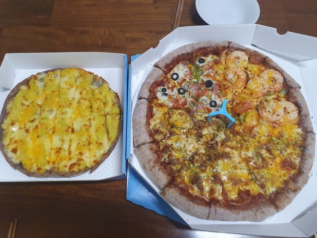 간만에 피자가 땡겨서 팔도피자(치즈)와 고구마스틱(무료쿠폰)을 주문해서 맛있게 먹었습니다~👍👍👍