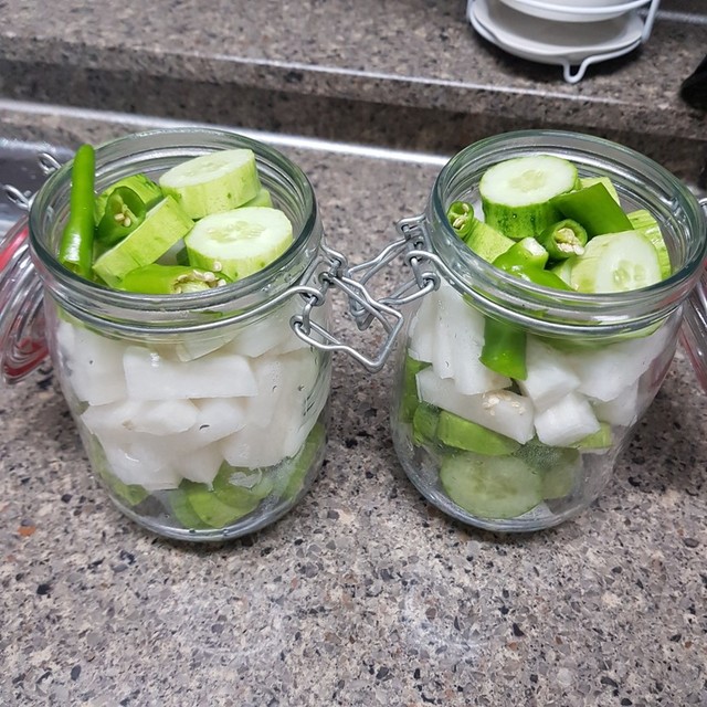 잠이안와서 밤을 홀딱지새우고 새벽댓바람부터 심심해서 피클담았어요경년기란 놈이 드뎌 온것인지...요즘 자주그러네요 원래 잠이 별로없기도하지만 에궁..잠을 못자니 피곤하기도하고..경년기~~어찌 받아들여야 쉽게 이길수있을까요?꿀팁좀주세요~~~~
