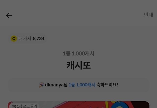 오랜만에 4등 당첨됐네요~뭐든 캐시 적립되면 기분 좋네요. ㅎㅎ차근차근 모아서 커피한잔의 기쁨을 얻을 수 있길 바라며 오늘도 열심히 모으네요.^^