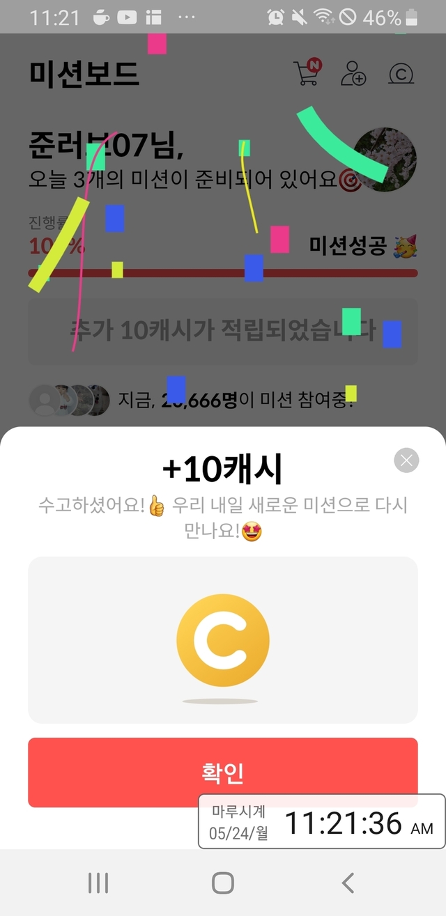 미션보드 매일 3만 주더니 10캐시 나와서 놀람요 ㅋ 소소한 기쁨이네요^^행복한 월욜 되세요 ^^