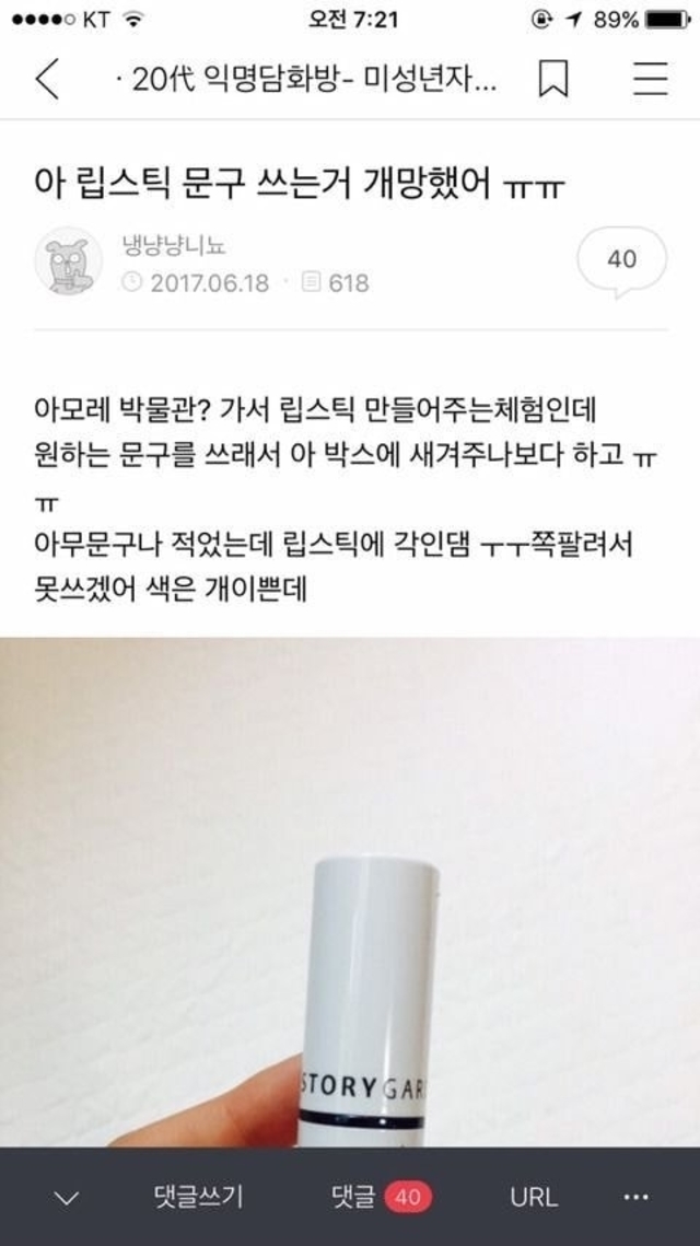 아 립스틱 문구 쓰는거 개망했어ㅠㅠ