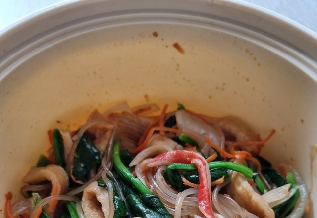 잡채는먹고싶은데귀찮음가득.그래서전자렌지용그릇에냉장고채소다때려넣고냉동실어묵해동해서간단히잡채했어요.채소가많아서건강한잡채.그런데당면색이희끄무레한느낌에양념장계속넣었더니짜다ㅜㅜ