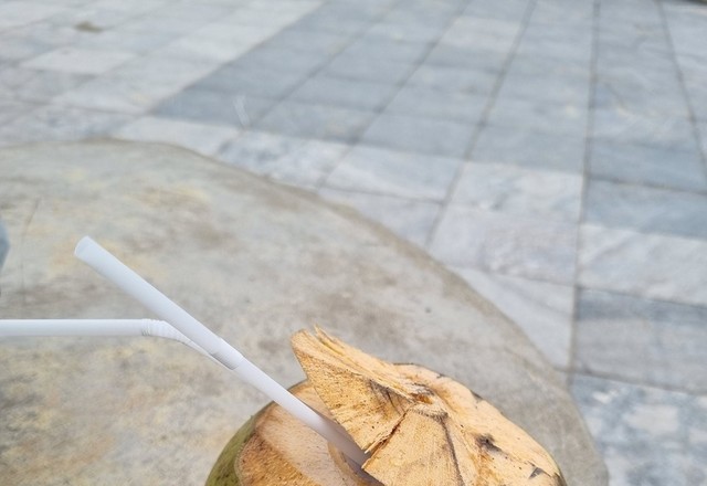 산타고내려와서한모금마신코코넛워터.밍밍한듯시원한맛.오묘하다ㅎ