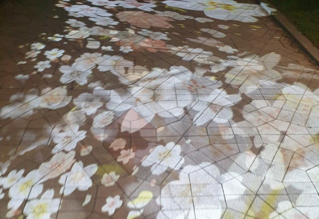 저희 동네에 나무에 조명장치를 달아서 바닥에 꽃밭이 생겼네요.
