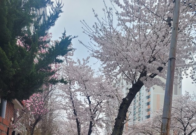 똘이랑 산책중 들꽃 벗꽃 구경했네요~똘이는 피곤한지 꿈나라 여행 준비중~