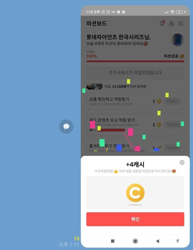 캐시피드 캐시슬라이드 미션보드 성공