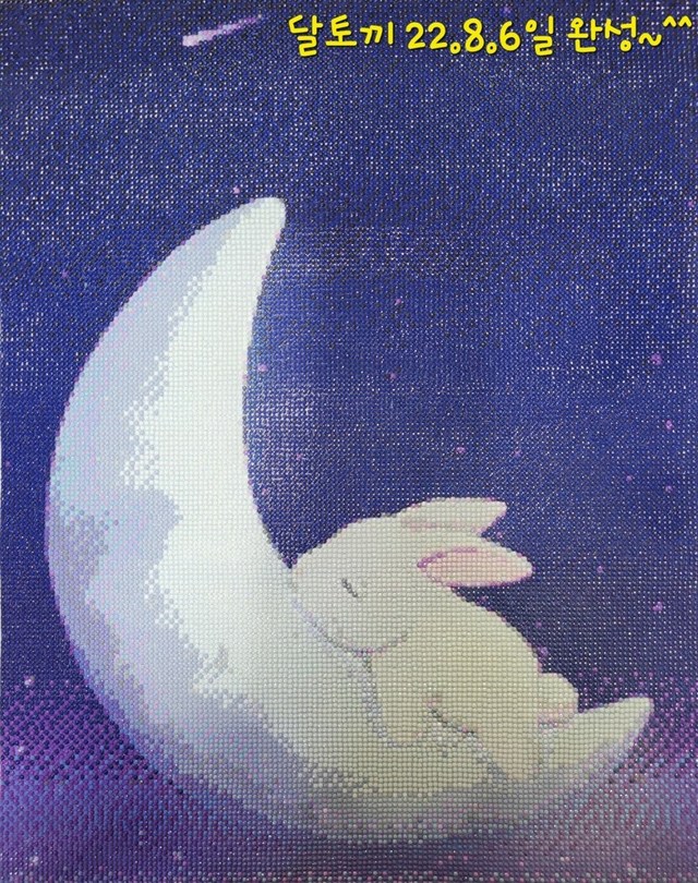 달토끼내년이 토끼띠라서 토끼를 주제로보석십자수 완성했네요~ㅎㅎ하나하나 찍어 채울때는 힘들더니완성하고나니 달에 걸쳐 누운 귀여운 토끼를보자니 힘들었던게 다 사라지고 웃음만만개하네요~~ㅎㅎㅎ다들 잘 주무시고 즐거운 명절 보내세요^^ㅎㅎ