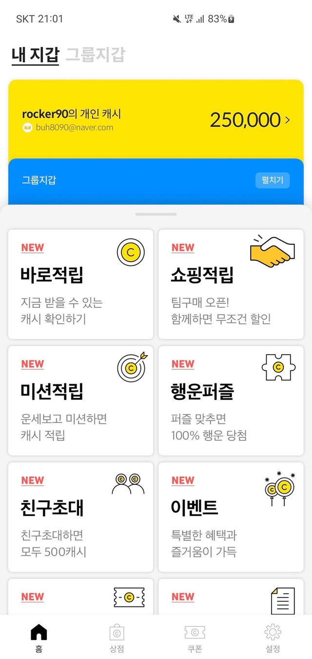 캐시 이체전 스샷
