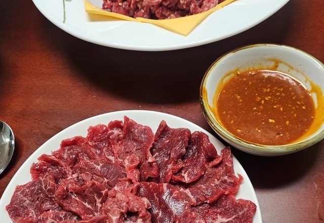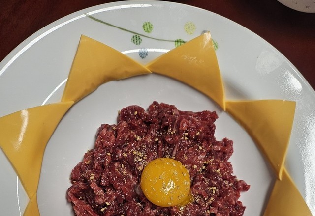 육회 치즈 노른자~~ 꼬숩