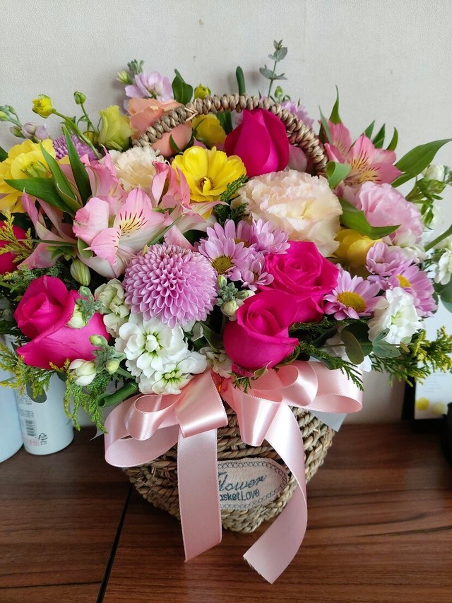 결혼 기념일에 아들이 꽃바구니를 보내 왔네요.남편도 꽃 선물 잘 안하는데 아들한테 꽃바구니 받으니 기분이 좋아요.