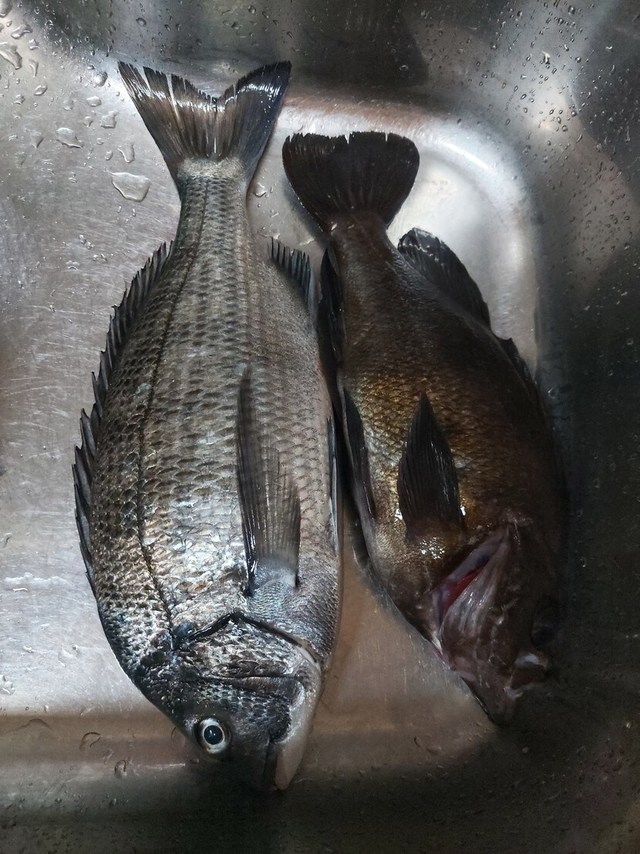 웬수인 남편이 낚시 가서 잡아 온 수확물입니다.진짜 큰놈으로 둘.. 작은놈으로 몇마리..잡아와서 안 먹는건 무슨 심뽈까요?.