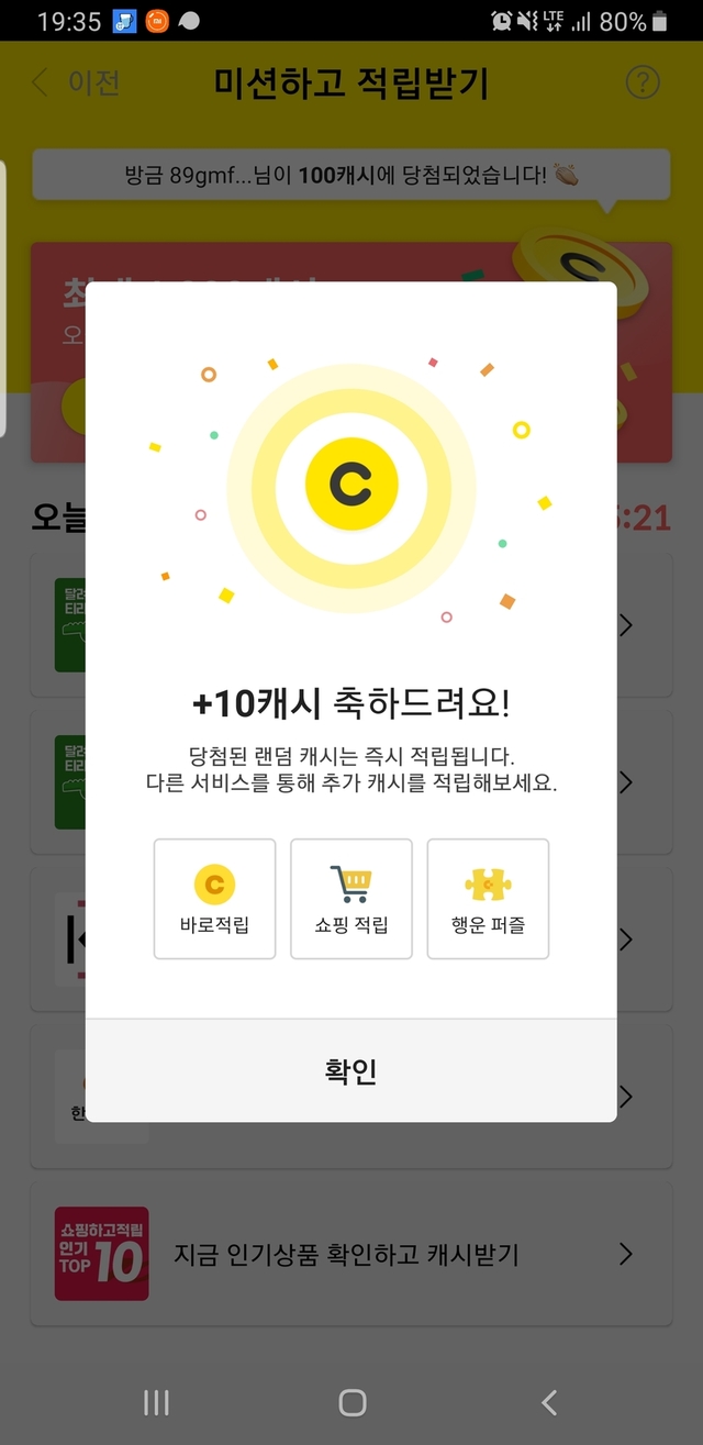 100캐시 나와 놀랐어요 즐거운 시간되세요