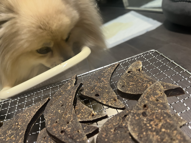 강아지 먹을거 돼지간을 건조해서 간파우더 만들었어요벚꽃과 함께 강아지가 신났어요