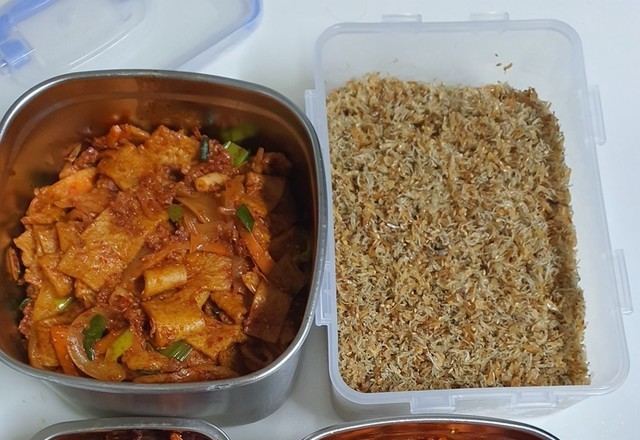 어제 밤 늦게 만든 반찬들~ 어묵조림.잔멸치볶음.무생채.볶음 마른새우고추장볶음