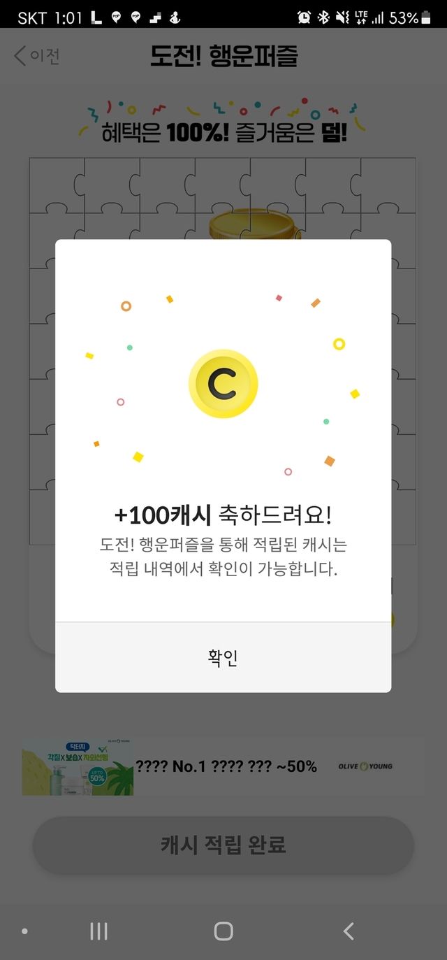 100캐시 퍼즐완성
