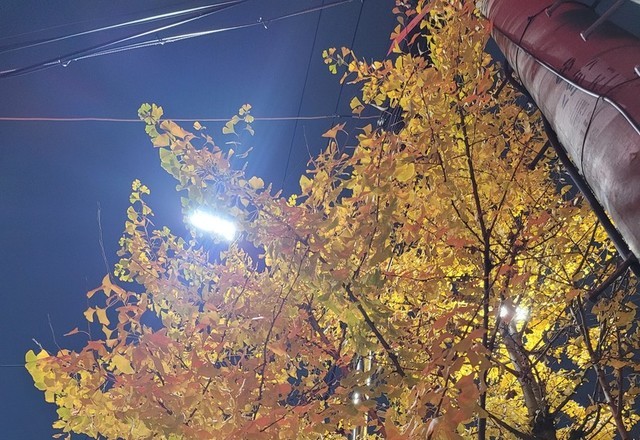 이제야 물든 은행나무