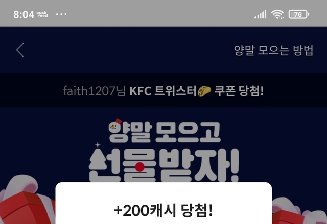 700캐시 받으신 분도 있던데... 200캐시로도 감사하죠.