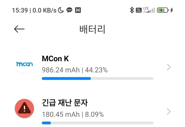 거의 50%나 소모하네요. 어쩐지 배터리가 빨리 떨어지더라니...