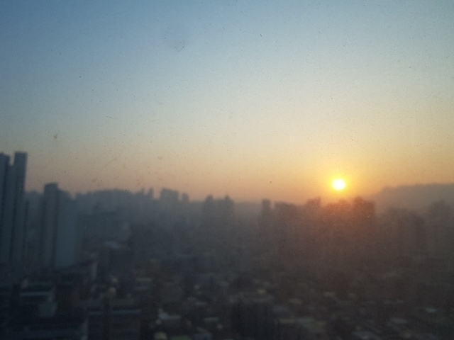 우히 집 거실에서 본 해돋이 모습입니다.