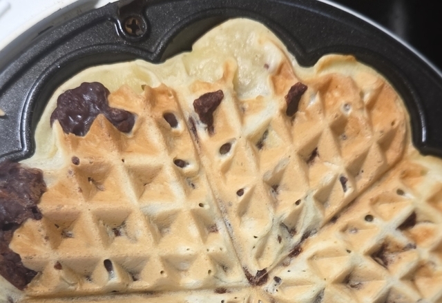 팥삶아서ㅎ 붕어빵반죽으로ㅋㅋ 붕어빵틀이없어서ㅋ와플로구웠어요ㅎㅎ 맛있네요 팥듬뿍 기술부족으로ㅋㅋ 팥탈출