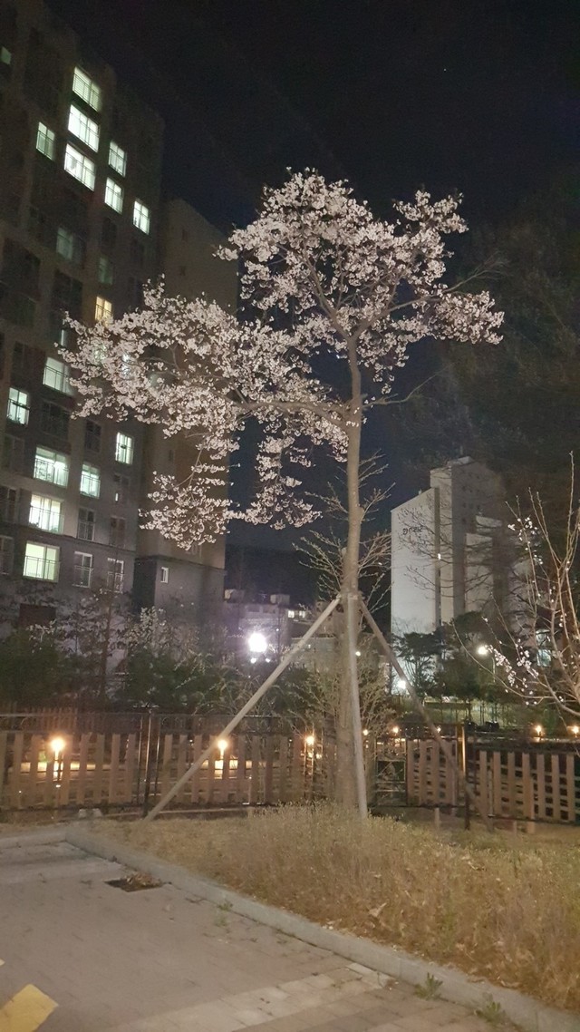 엄청 이쁘게 핀 것은 아니지만밤에 구경하면서 사진을 찍으니못내 분위기가 좋더라고요 :)