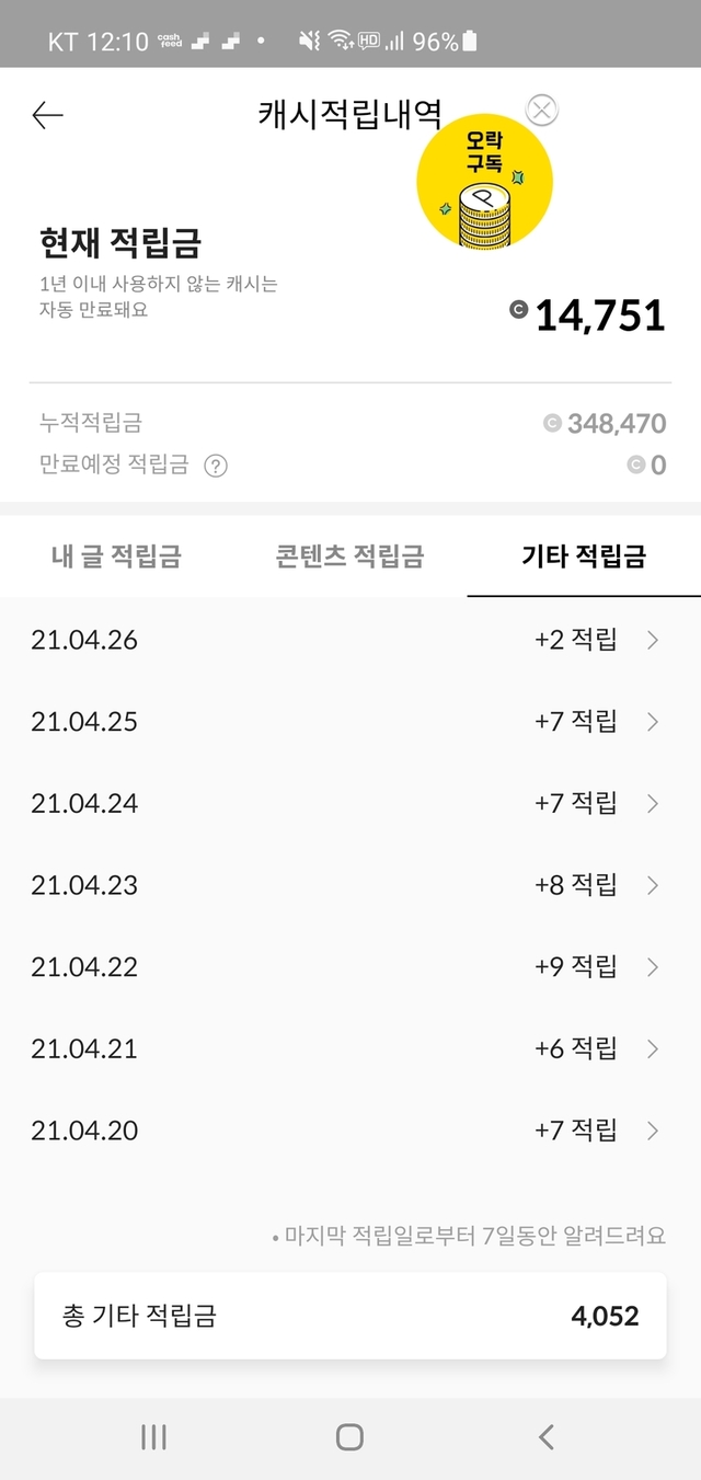 하루에 다 합치면 1000점정도 적립.천원을 덜쓰자