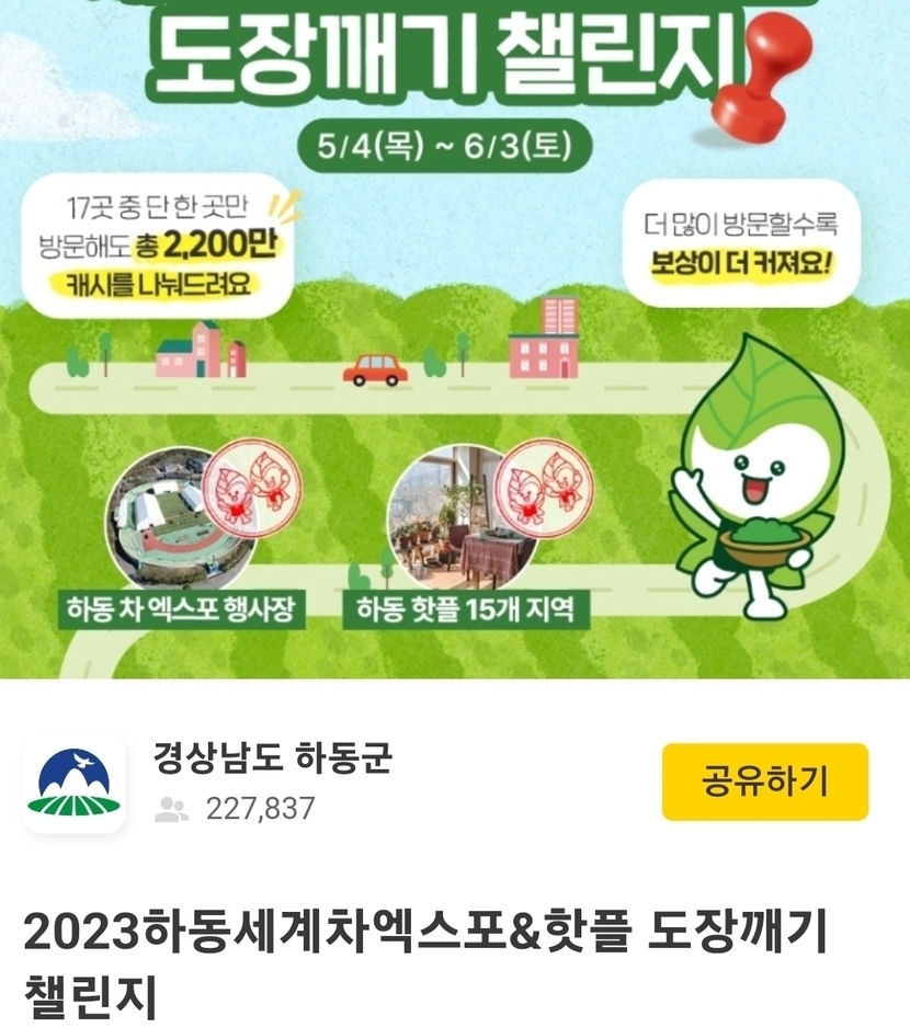 23.06.04 198 읽음 하동 도장깨기 하얀민들레 구독하기 24 24 콘텐츠의 수익 4 어디로 가볼까?마땅한 곳도 생각 안나고캐시워크에서 하는 도장깨기가 생각나서몇개만 찍고 오자고 나선 길꼬불꼬불 산길 초행길이라 운전교대도 못 해주고독박으로 9시간 넘게 운전긴 운전으로 고생시켜 미안함은 있었지만..몰랐던 곳도 알게 되고미션 클리어 하는 재미도 쏠쏠하고.하동의 구석구석 이쁨에 반한 날이였네요 24 0 / 300 입력