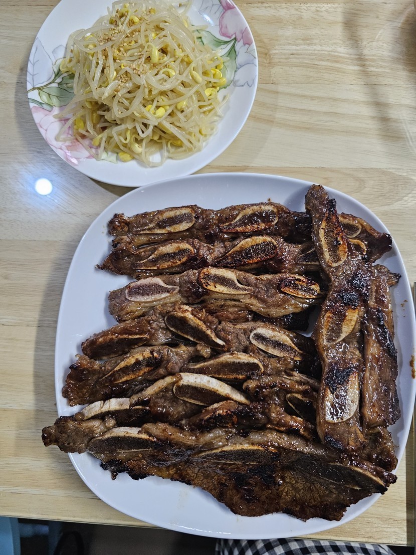 23.06.07 290 읽음 LA갈비 miin2g5 구독하기 35 34 콘텐츠의 수익 10 어제 남편이랑 고기사러갔었어요.LA갈비 1키로 사서 시판 소갈비소스에 재웠어요.어제 5줄 먹고 오늘은 남편도 살코기 좀 뜯으라고프라이팬2개에 10줄구윘는데애들땀시 오늘도 살코기는 못먹었어요 😂 콩나물무침도 했는데 제가 손이 참 작은데오늘은 평소보다 3배 더 했는데도 부족했어요. 😂 34 0 / 300 입력