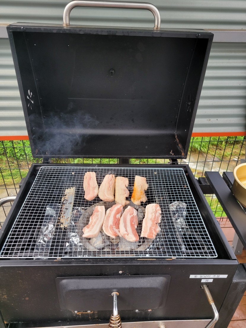 숯불에 고기굽기