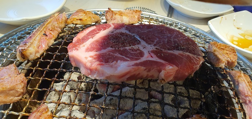 23.08.25 457 읽음 돼지갈비 맛있어요. 얼룩말2 구독하기 25 29 콘텐츠의 수익 8 아들 생일이어서 어디서 저녁 먹고 싶니? 물으니 명륜진사갈비 먹고 싶다 해서다녀왔어요.옆지기는 무한리필 가면 자제하기 힘들다고가지 않겠대요.조금만 먹어도 배가 볼록하게 나오니 ㅠㅠ아들하고 둘이서 가서 맘껏 즐겼네요.목심이랑 삼겹살도 맛있고 양념갈비는말해 뭐하겠어요.ㅎㅎ 손바닥만한 고기 이름은 모르겠는데뼈가 붙어 있고 구워 먹으니 고소해요. 아들의 18세 생일^^ 축하해주세요. 29 0 / 300 입력