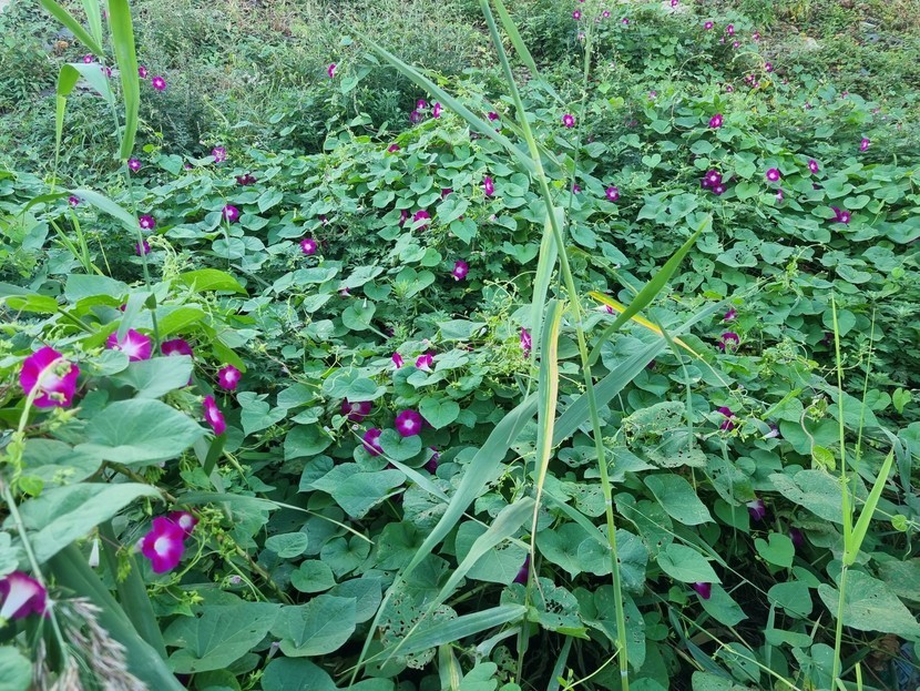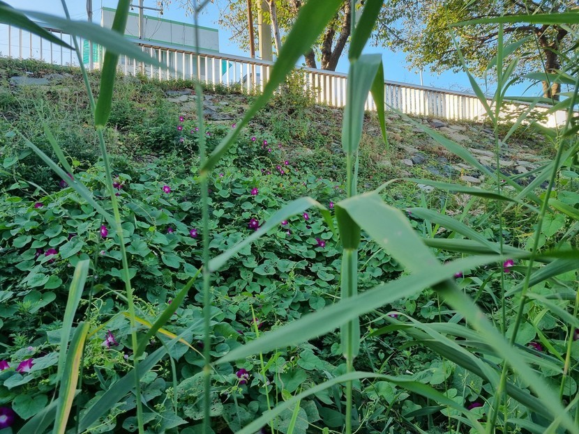갈대숲에서활짝웃고있는.나팔꽂 갈때을헤치고찍었네요