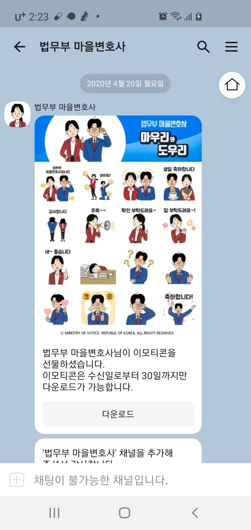 20.04.20 314 읽음 법무부마을변호사카톡친구추가하고이모티콘받으세요 gugenhime 구독하기 1 13 콘텐츠의 수익 33 http://pf.kakao.com/_exmxoUj/50692619선착순 13 0 / 300 입력