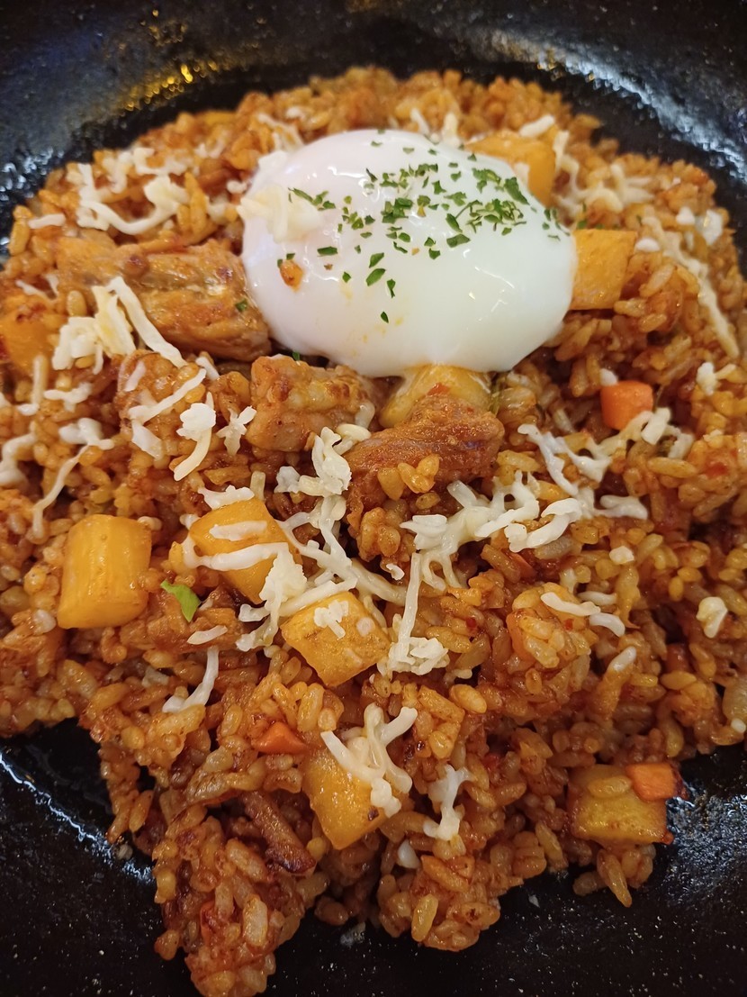 깍두기볶음밥에 수란 챱챱