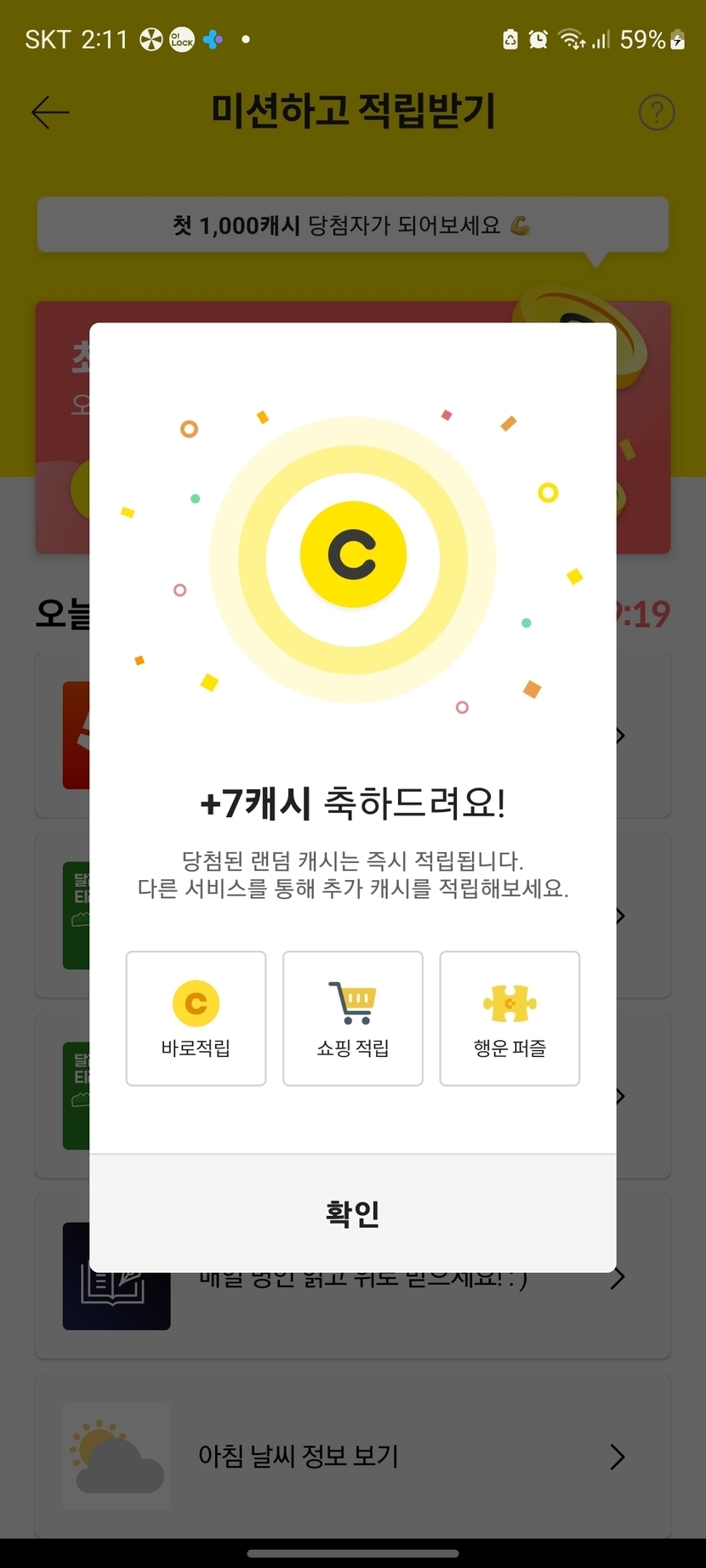 미션하고 적립받기