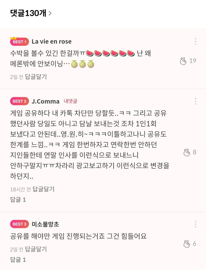 좋아요수 얼마안되지만 이런걸로 베댓 되기도 첨..💦