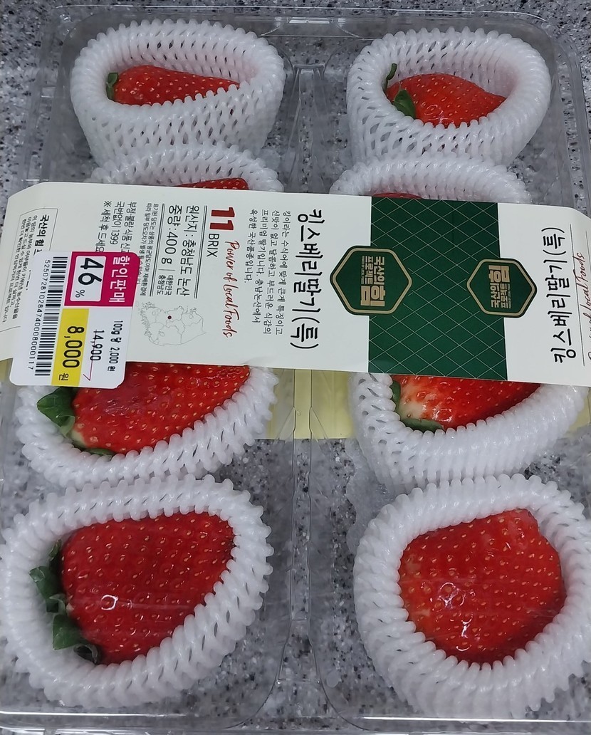 상품이 49% 할인해서 8,000원 했어요. 딸기 한 개당