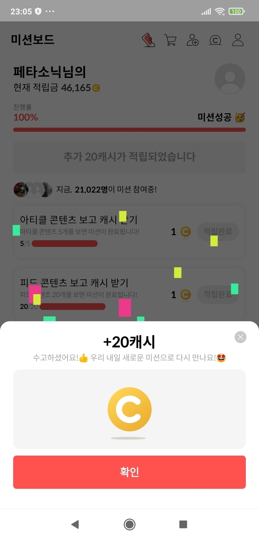 매일 3~6포인트만 보다가 2자리 수 포인트를 받네요.