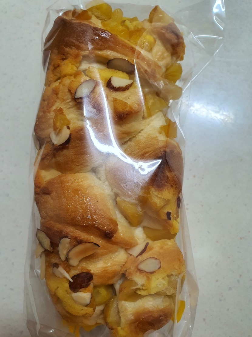 빵 윗면은 아몬드슬라이스와 밤으로 바삭한 식감이고요