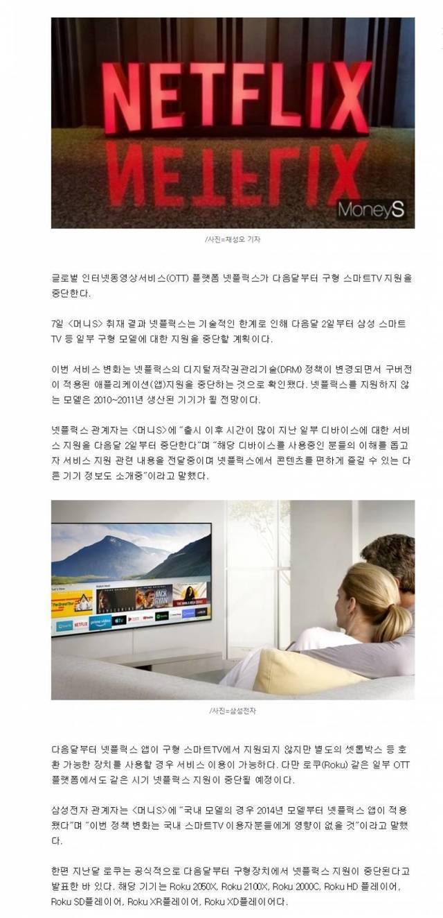 넷플릭스, 12월부터 구형 스마트TV 지원 중단 ,,,