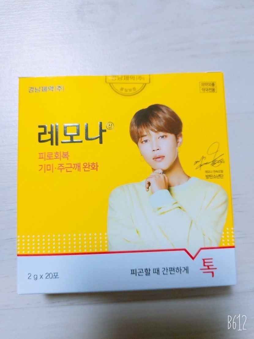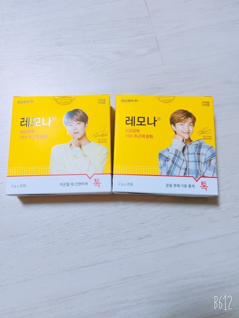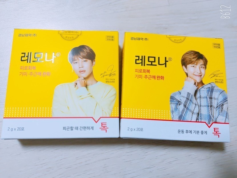 20.05.10 323 읽음 약국에서 판매하는 BTS(방탄소년단) 레모나♡♡♡ 윤빵이1209 구독하기 2 19 콘텐츠의 수익 22 두딸이 좋아하는 BTS(방탄소년단)!!레모나가 나온다는 말에 약국으로~~포토가 새겨져 있는데 선택할순 없고 랜덤으로 사야 한다고 한다.과연 누가 나올것인가ㅎㅎ두둥두둥^^짠~민윤기랑 김남준이다ㅎㅎ 랜덤인데 잘 나왔다.다음에는 다른 멤버로ㅎㅎ.레모나는 피로 회복,기미 주근깨 완화에 좋은거 같다.레모나 드시고 힘내세요~~ 19 0 / 300 입력