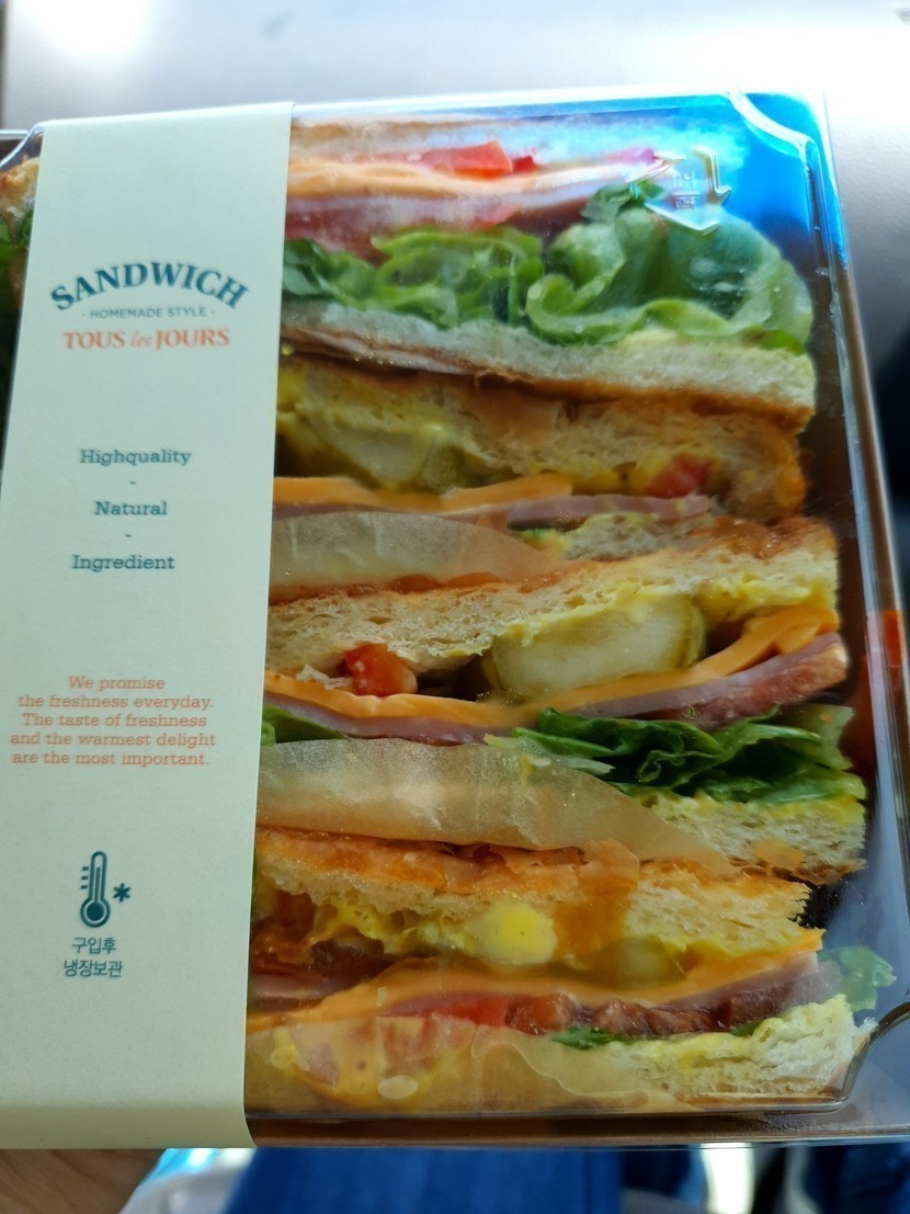 20.05.12 8,378 읽음 ✳✴뚜레쥬르 샌드위치 시식후기 ✳사라사라 ✴ 벌꿀벙꿀 구독하기 78 458 콘텐츠의 수익 179 🏃♀️🏃♂️바쁘게 일보러 다니느라 점심 대신 선택한 뚜레주르 샌드위치 입니다.총4조각으로 페스츄리로 겹겹이 쌓여 부드러워 먹는것도 부담이 없어 좋았습니다.샌드위치 가격은 5800 원으로 캐시워크에서 뚜레쥬르 쿠폰 5000 원으로 바꿔 구입했습니다.뚜레쥬르 두유~~^^가격은 1600 원 샌드위치랑 같이 먹었는데 고소하고,거뜬한 한끼 식사로 좋았습니다. 458 0 / 300 입력