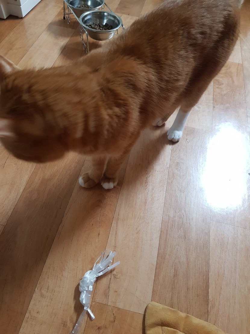 계란판끈을 묶었더니 양이가 즐겁다