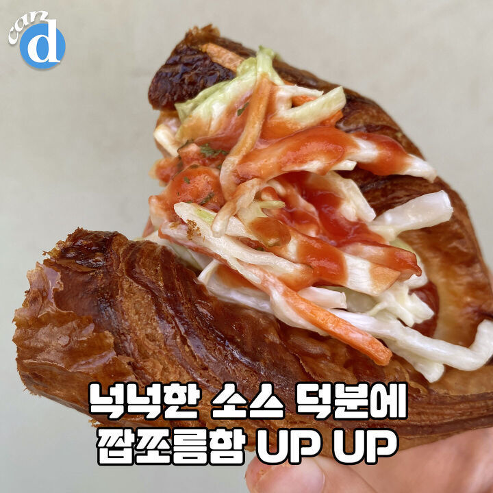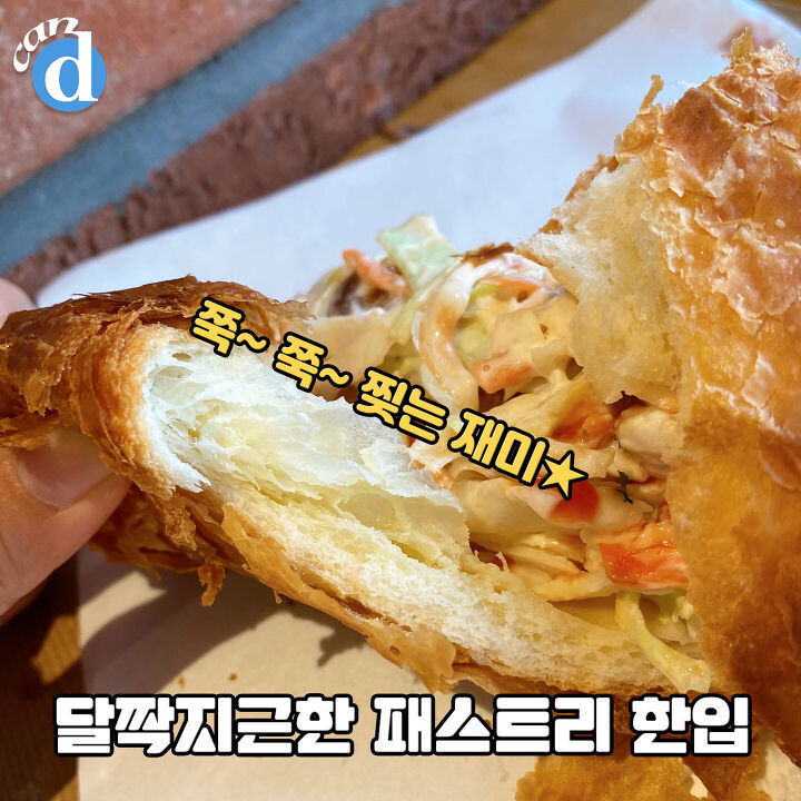 한입 넣자마자 패스트리의 달콤한 표면에 1차 행복. 겹겹이 쌓인 빵의 푹신한 식감에 2차 행복♥