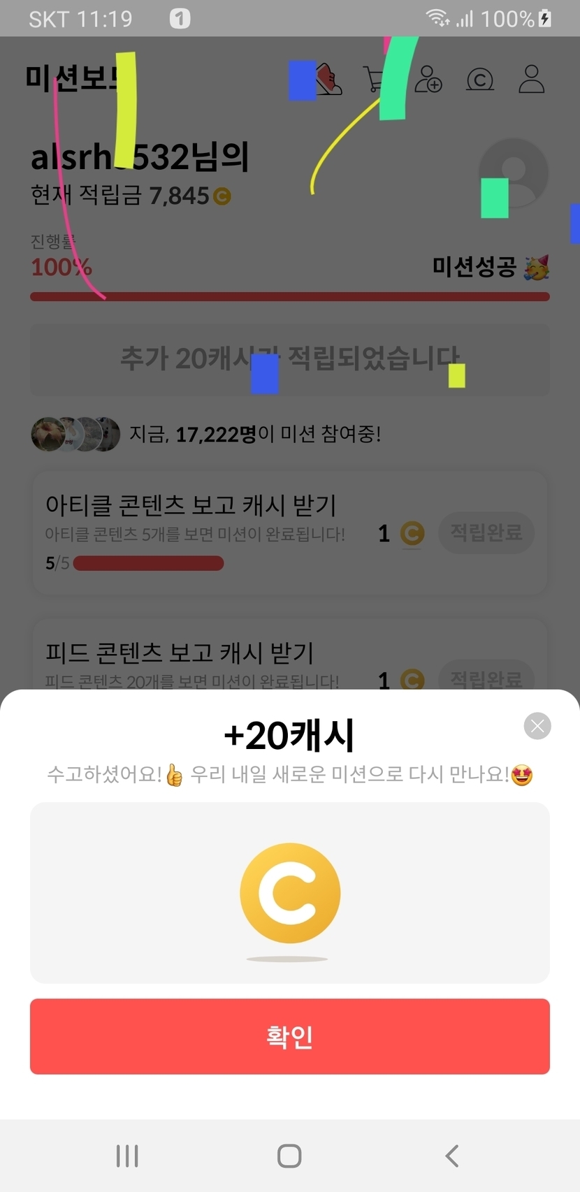 20캐시 받았네요.