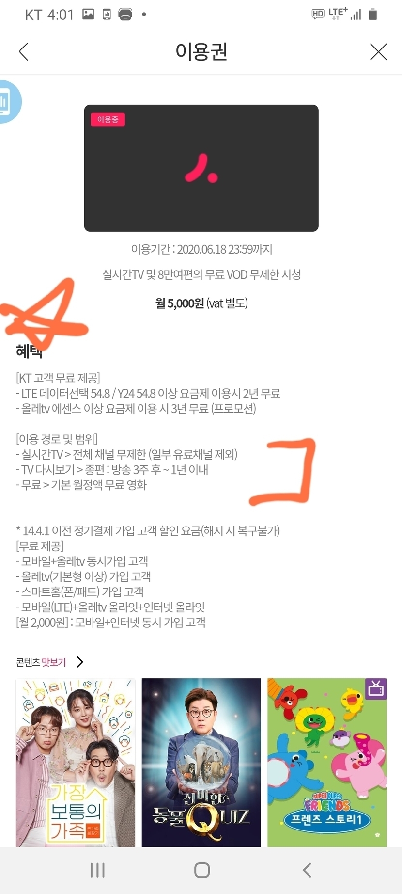 ๋ฌด์๋ณด๋ค ๐ฅ๐ฅ๐ฅkt ์๊ธ์ ์ ๊ฐ์ ๋ ๋ถ๋ค์ด ์ด์ฉํ ์์๋ ์๋น์ค(์ค์๊ฐtv, ์๊ธ์ ๋์ ๋ฌด๋ฃ๋ค์๋ณด๊ธฐ)๊ฐ ๊ฑฐ์ ๋ค์ฌ์ ์์ฉ์์ด์...์ง์ง...