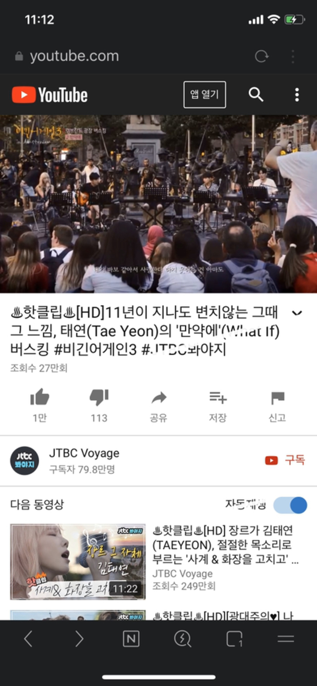 웨일이라는 네이버에서 만든 앱인데 완전 꿀이야이걸 다운 받고 유튜브를 들어가서 듣고 싶은 노래를 쳐ㅕ그러고 난 다음엔저 흰색으로 표시 한 것을 누르면이렇게 바뀌는데저기 흰색으로 표시한 곳을 누르면 밑에 창은 유튜브 말고 네이버로 바껴 이렇게 하고 웹서핑 해도 되고 그냥 유튜브 튼 채로 나오면앱 실행을 안해도 일반 노래 듣는 것 처럼 다른 거 하면서 노래를 들을 수 있어