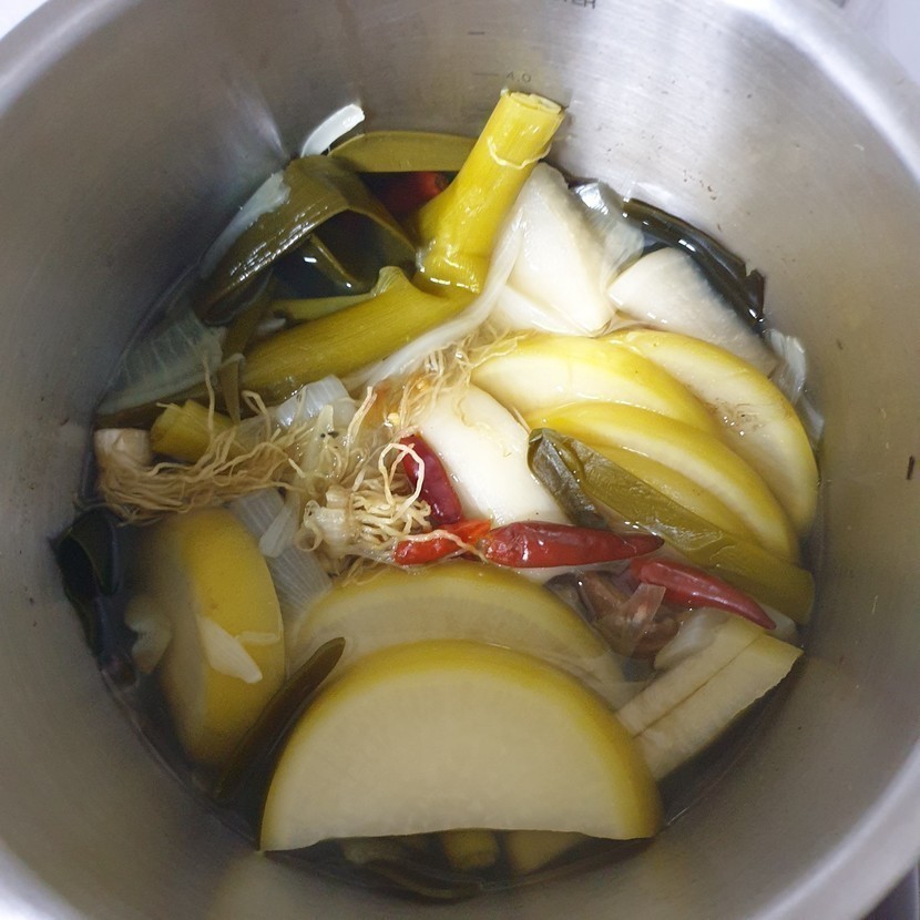채수는 채식주의자를 위한 김치에도 넣고 모든 육수가 필요한 요리에 육수 대신 넣으면 된다고 해요.