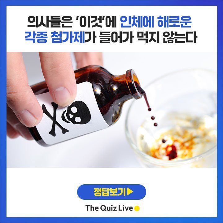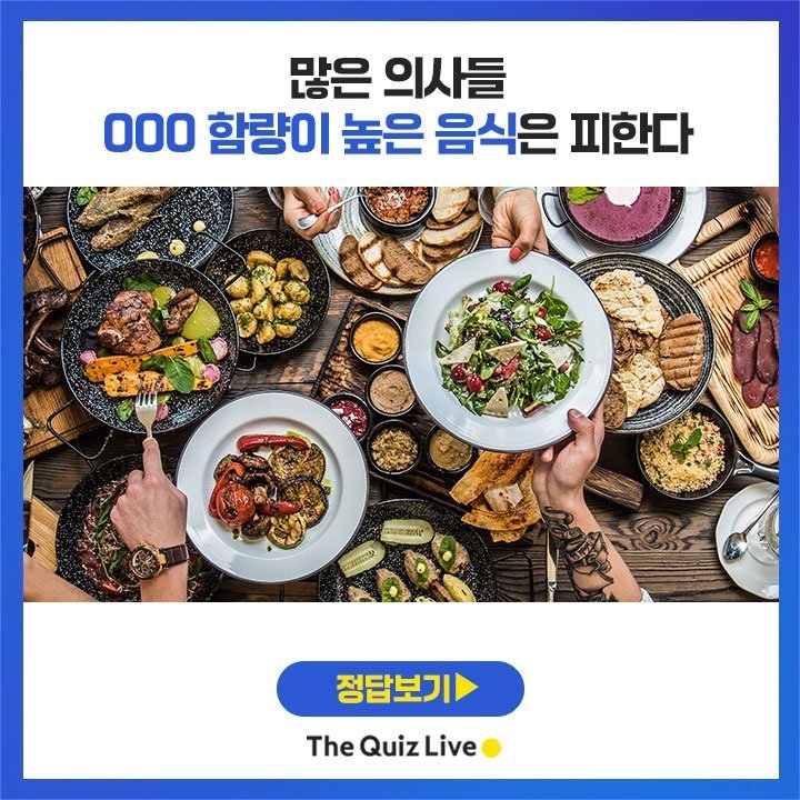 누구도 건강에 해로운 음식을 먹기를 원치 않는다. 때문에 매 끼니 나름대로 가진 기준에 따라 건강하고 만족스러운 식사를 찾는다. 하지만 우리가 무심코 즐겨 먹었던 음식들이 오히려 몸에 해로울 수도 있어 주의가 요구된다.특히 의사들은 이런 음식들이 신체에 어떻게 작용할지를 그 누구보다 잘 알고 있다. 따라서 그들은 자신의 건강을 생각해 몸에 해로운 음식을 먹기를 피하기도 한다. 오늘은 퀴즈를 통해 의사들이 먹지 말라고 경고한 음식은 어떤 것이 있는지 함께 알아보도록 하자.1번▼ ▼ ▼육류의 특성을 살려, 맛있고 먹기 편하게 변형시키는 동시에 저장성을 살린 육가공식품. 조리가 수월하고, 맛있어서 아마 많은 이들이 즐겨 먹는 음식 중 하나일 것이다. 보통 육가공식품은 육류에 아질산염과 질산염 등을 혼합 가공해 만든다.그런데 의사들 대부분은 가공할 때 들어가는 이 첨가제가 건강에 매우 해롭다는 의견이다. 특히 이들 가공육에는 지방이 다량 함유돼있고, 콜레스테롤 수치도 높다. 특히 육가공식품은 섬유질의 함량이 매우 적어 과다 섭취 시 변비나 소화불량이 유발될 수도 있다. 게다가 이를 불에 직접 가열하는 과정에서 발암 물질이 발생하는 것으로도 알려졌다. 2번▼ ▼▼쫄깃한 식감과 고소한 맛이 일품인 곱창은 많은 사람이 사랑하는 음식 중 하나다. 하지만 의사들은 피해야 하는 음식으로 곱창 및 막창을 선택하기도 한다. 대부분이 조리 과정에서의 오염 및 위생상태를 이유로 꼽았다. 이 밖에 곱창은 소나 돼지의 소장으로 만드는 음식이므로 위생적으로 문제가 있을 수 있다고 지적하기도 했다.